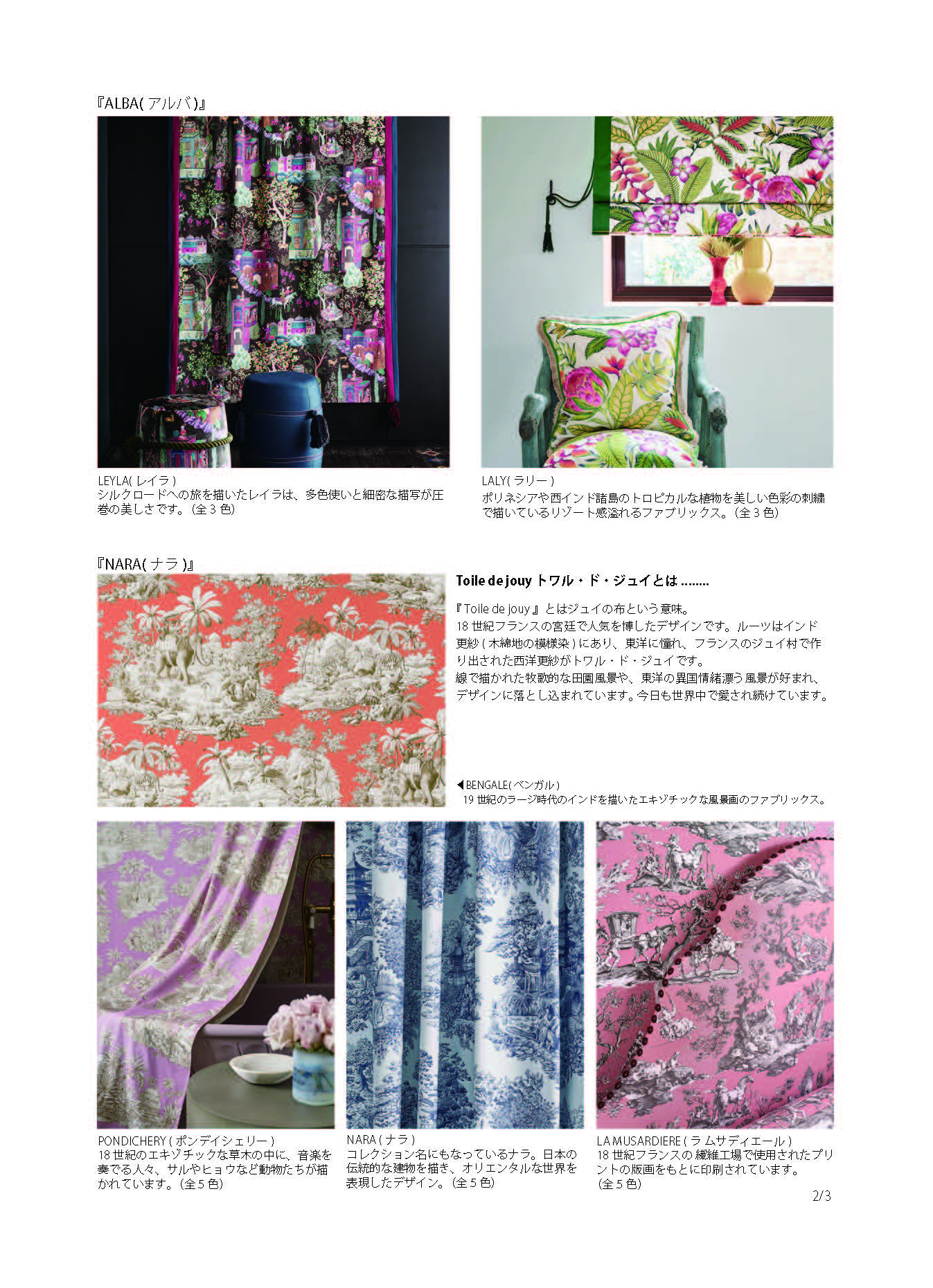 ”joie de vivre ” 生きる喜び をテーマに心躍る色彩『ALBA(アルバ)』、待望のトワル・ド・ジュイ『NARA(ナラ)』を発売