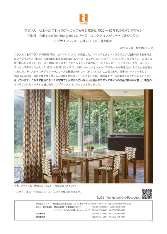 新作ファブリックス『ELISE Collection Djo-Bourgeois( エリーズ コレクション ジョー・ブルジョワ)』(8デザイン、25点)を、