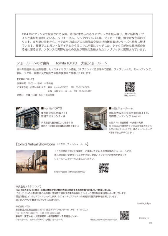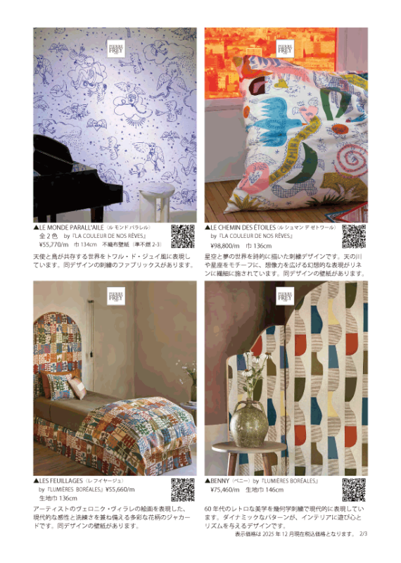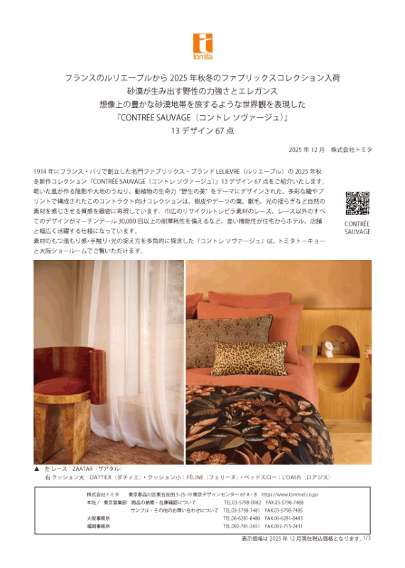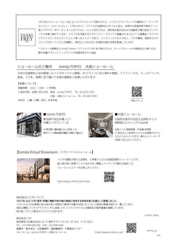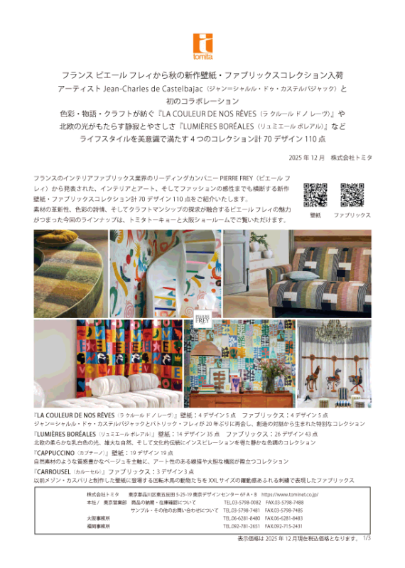 ㈱トミタのショールームtomita TOKYO、大阪ショールームに、フランスを代表するインテリアブランドの「PIERRE FREY」と「LELIEVRE」の2025年秋冬の新作壁紙・ファブリックスコレクションが入荷いたしました。