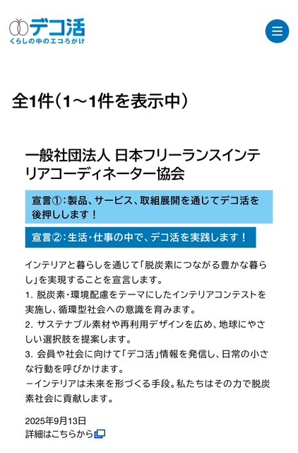 このたびJAFICA(日本フリーランスインテリアコーディネーター協会)は、インテリアと暮らしを通じて「脱炭素につながる豊かな暮らし」を実現するため、デコ活宣言を行いました。